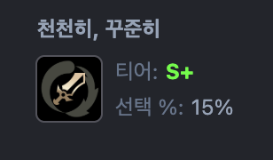 | 1위 | 제이스 | 천꾸(천천히, 꾸준히) 뽑으면 AD +385 터짐, 사실상 원샷 머신 | 천천히, 꾸준히 |